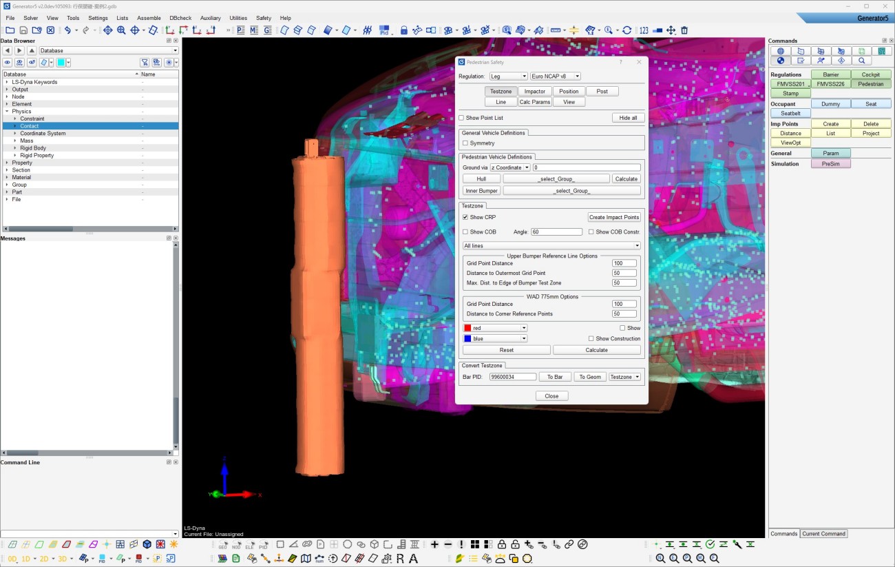 集成全球行保工况,自动划线定位各种行保撞击器,批量导出计算文件