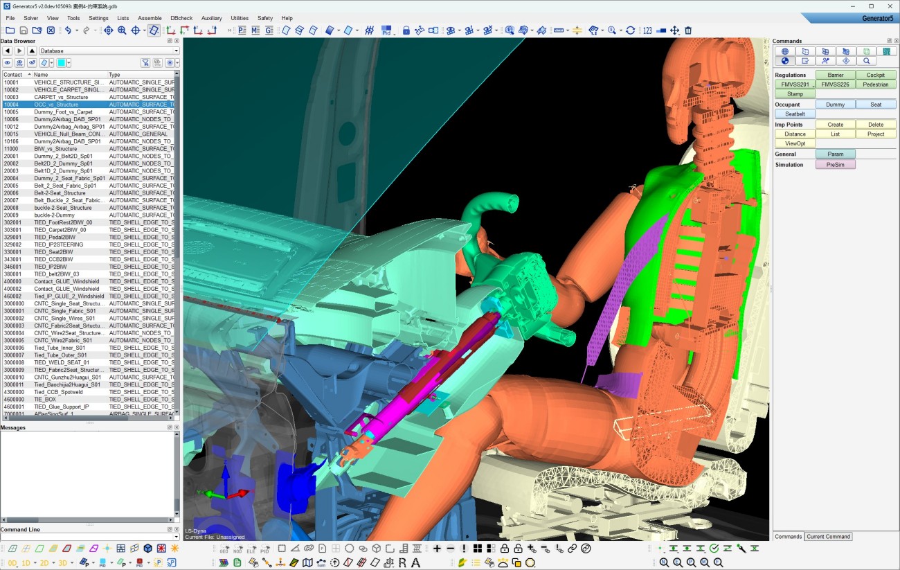 约束系统建模,定位并匹配假人、座椅、安全带、管柱等机构部件,快速适用各种假人碰撞工况